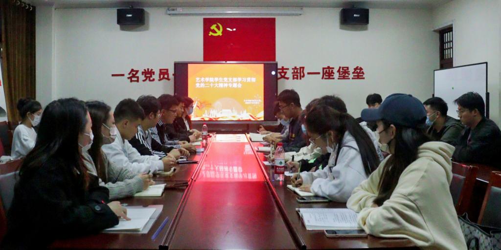 2022年10月26日下午6点,beats365唯一官方网站员工党支部在艺术楼302会议室集体学习党的二十大报告。