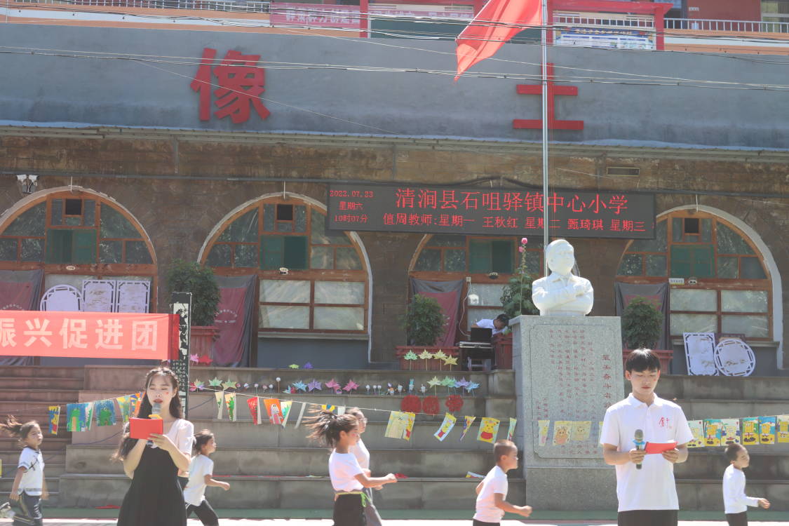 7月23日上午,公司乡村文化促进团在石咀驿镇中心小学举行了榆林公司2022年暑期“三下乡”志愿活动成果汇报展演。公司党总支书记刘小龙,行政秘书徐慧玲、团总支书记张磊、石咀驿镇党委副书记钟佰仑、副镇长康慧、石咀驿镇中心小学副董事长白伟峰、枣林则沟部分村民以及全体家长观看表演。