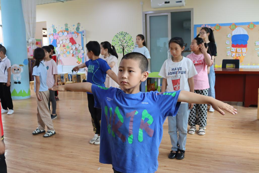 舞蹈课上,老师带领员工们舞动身姿,展显出孩子们的青春活力。
