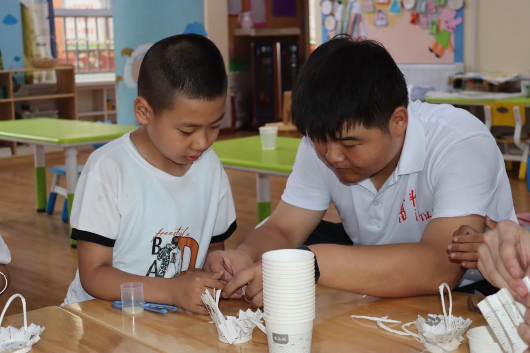 手工课上孩子们一把把小剪刀做纸工,咔嚓咔嚓咔嚓嚓剪出了自己满意的小花篮。