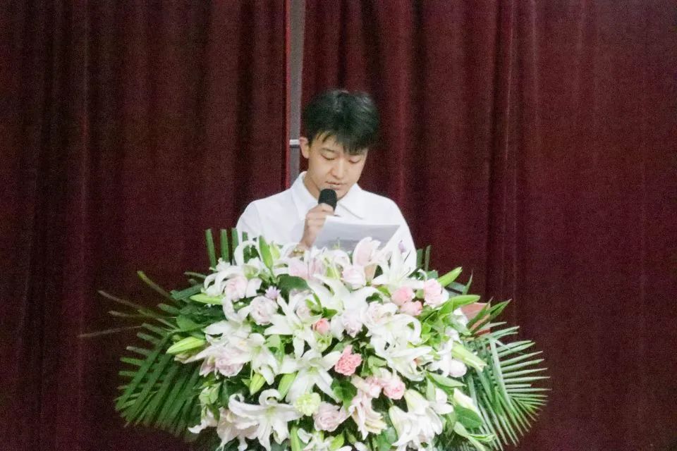 教师代表姚莎老师上台致辞:青春在岁月中挥洒,我与你们共同生活学习,也不禁被青春渲染,仿佛自己也有青春的姿态。青春只有一次,同学们坚守初心揣梦想积极投入人生的下一站,让青春在奋斗和奉献中闪光,努力前行,不被困难阻挡,祝同学们前程似锦,未来可期。