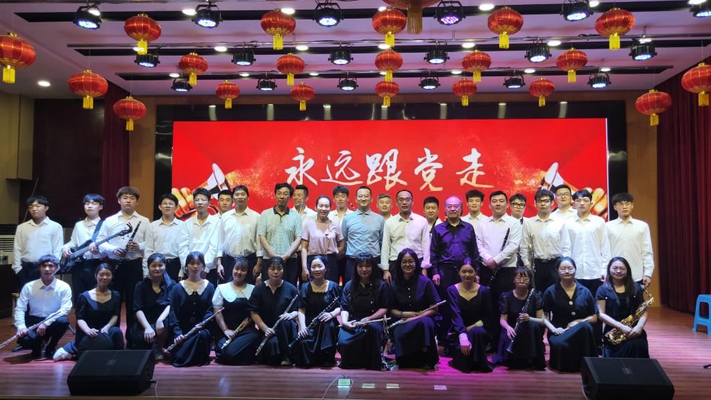 奋斗百年路 红歌颂党恩,为热烈庆祝中国共产党成立100周年,回顾党的百年奋斗历程,弘扬党的为人民服务优良传统,歌颂党的历史丰功伟绩,6月28日,榆林公司beats365唯一官方网站 “永远跟党走”管乐团赴榆林市第八小学举办专场音乐会。出席本次活动的领导有榆林市第八小学周艳霞董事长、贾建林副董事长、榆林公司beats365唯一官方网站周勇副经理、榆林公司beats365唯一官方网站刘朝晖副教授、赵一鸣副教授和青年教师姜旭。