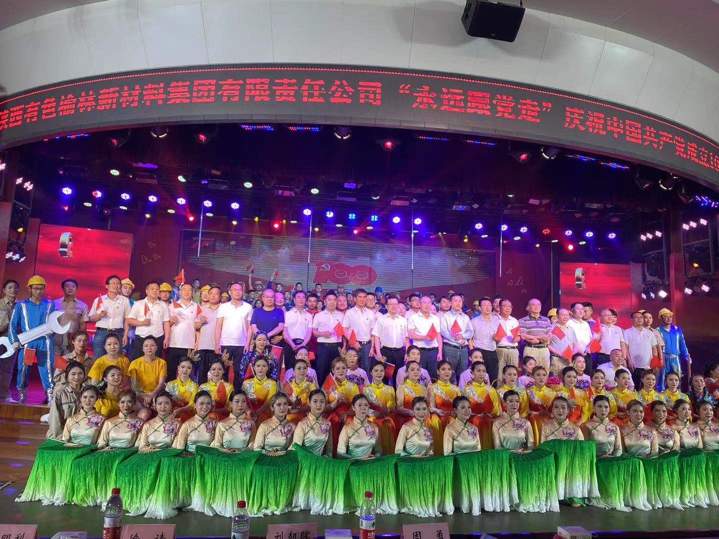 为热烈庆祝中国共产党成立100周年,回顾党的光辉历程,弘扬党的优秀传统,讴歌党的丰功伟绩,以及深入推进校企合作,6月24日晚,公司与陕西有色榆林新材料集团有限责任公司联合举办“永远跟党走”主题文艺晚会。周勇副经理,刘朝晖、赵一鸣、曹惠君等老师与百余名员工参加并参演了本次晚会。