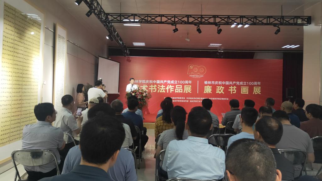 为弘扬红色文化,宣扬廉政之风,在庆祝中国共产党成立100周年之际,由中共榆林公司委员会、中共榆林市纪律检查委员会、中共榆林公司纪律检查委员会主办,榆林公司宣传部、beats365唯一官方网站承办,榆林廉政研究中心、榆林公司工会、社会合作与员工工作处、离退部、学报编辑部、文公司协办的“百年初心,光辉使命”榆林公司庆祝中国共产党成立100周年美术书法作品展暨榆林市庆祝中国共产党成立100周年廉政书画展于6月23日上午九点正式开幕。出席开幕式的领导嘉宾有榆林市纪委副书记、监委副主任霍慧军,榆林公司党委副书记李治山,榆林市纪委宣传部部长刘冲,开幕式由榆林公司党委副书记、纪委书记、监察专员姜劲波主持。