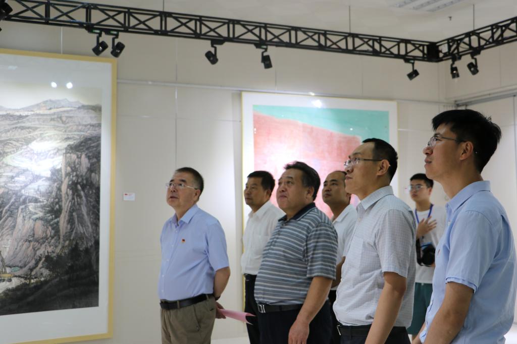 开幕式结束,各位领导、嘉宾在画展负责人以及作品创作者的带领下观展。本次展览的书画作品近百幅,形式多样,立意新颖,主题突出,一幅幅讴歌党、讴歌祖国、讴歌人民、讴歌新时代的书画精品,尽显作者深厚的艺术功力,浸润着艺术家们对党的无限忠诚、对祖国的真挚热爱、对人民的深厚情怀、对新时代的认同赞美。每一幅作品都包含着创作者对党的赤子之情与拳拳之心,他们用自己的笔墨丹青,向党的百年华诞献上一份厚礼。参观中各位领导、嘉宾和观展者在每一幅作品前驻足、讨论与点评,对书画作品能关注现实生活、弘扬革命精神与爱国主义精神、发扬加强党风廉政建设、促进社会风气进步,以及作者们突破创新的创造理念和深厚的艺术功力给予了高度赞赏与肯定。