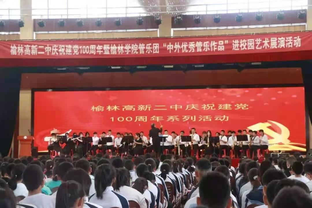 弦乐悠扬,国韵飘香,榆林公司beats365唯一官方网站为庆祝建党100周年—“永远跟党走”管乐团专场演出,一月之内已成功举办四场高雅艺术进校园活动。