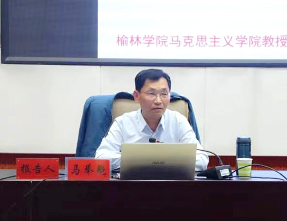 大会一开始,全体党员观看了党史学习教育专题片。马举魁教授带领大家围绕“西北革命策源地、伟大长征胜利落脚地、模范抗日民主根据地、中共中央转战陕北战略转折地与学习榆林红色革命史的启示”五点内容展开,论述了中共中央与陕甘革命根据地“两点一存”历史地位的形成,指出在中国革命由土地革命向抗日战争转折的历史过程中,作为“硕果仅存”的陕甘革命根据地,成为南方各路红军长征的落脚点和中共领导的抗日武装走上抗日前线的出发点,并高度肯定了榆林在中共中央转战陕北战略转折中的意义所在。他的党史学习报告鞭辟入里、深入浅出为现场的党员干部、广大师生学习领会习近平总书记关于党史学习的重要论述,扎实开展好党史学习教育提供了明确的思路与切入点。