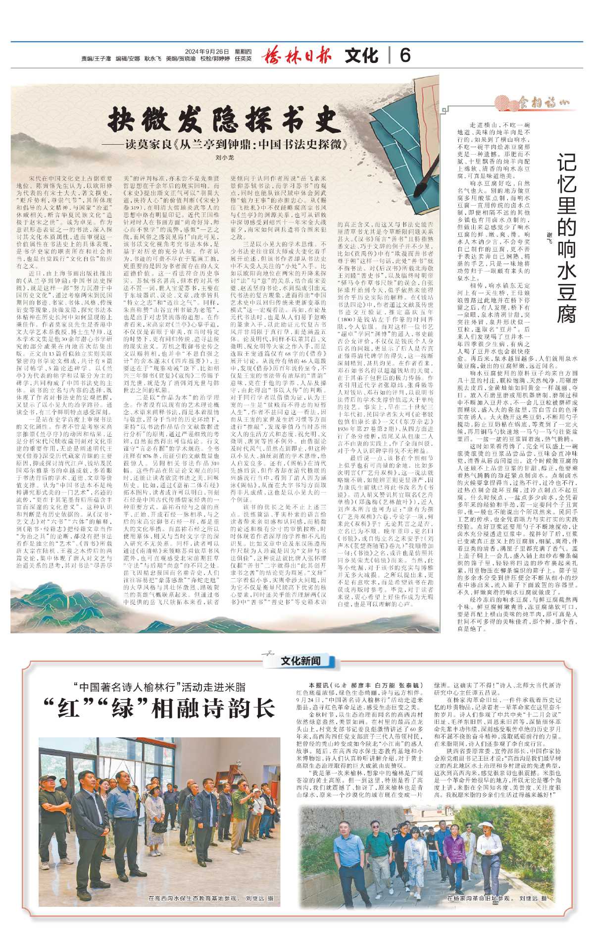 《榆林日报》2024年9月26日第6版“文化”栏目刊发了公司党总支书记、副经理刘小龙的书评文章——《抉微发隐探书史》。