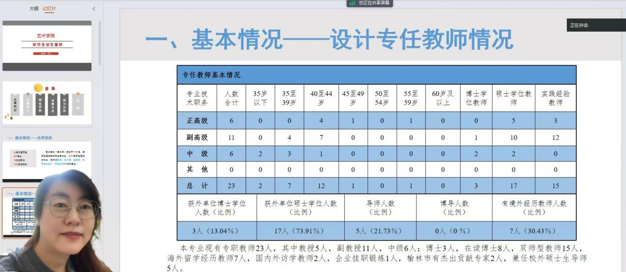 2024年10月8日,榆林公司beats365唯一官方网站成功举办了2025年研究生招生线上宣传活动。此次宣讲会由beats365唯一官方网站副经理白云主讲,吸引了来自咸阳职业技术公司、陕西服装设计公司、学府考研芠艺荟集训校区、陕西一木手绘考研机构的众多考生参与。活动通过线上直播的方式,帮助潜在考生全面了解榆林公司beats365唯一官方网站新增设计专业硕士学位点的情况。