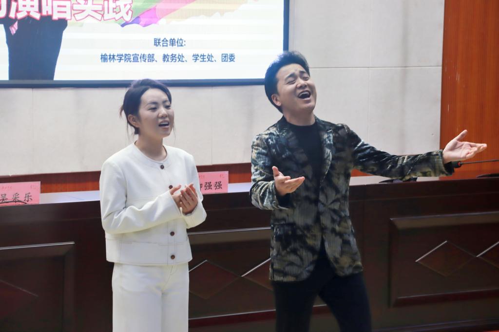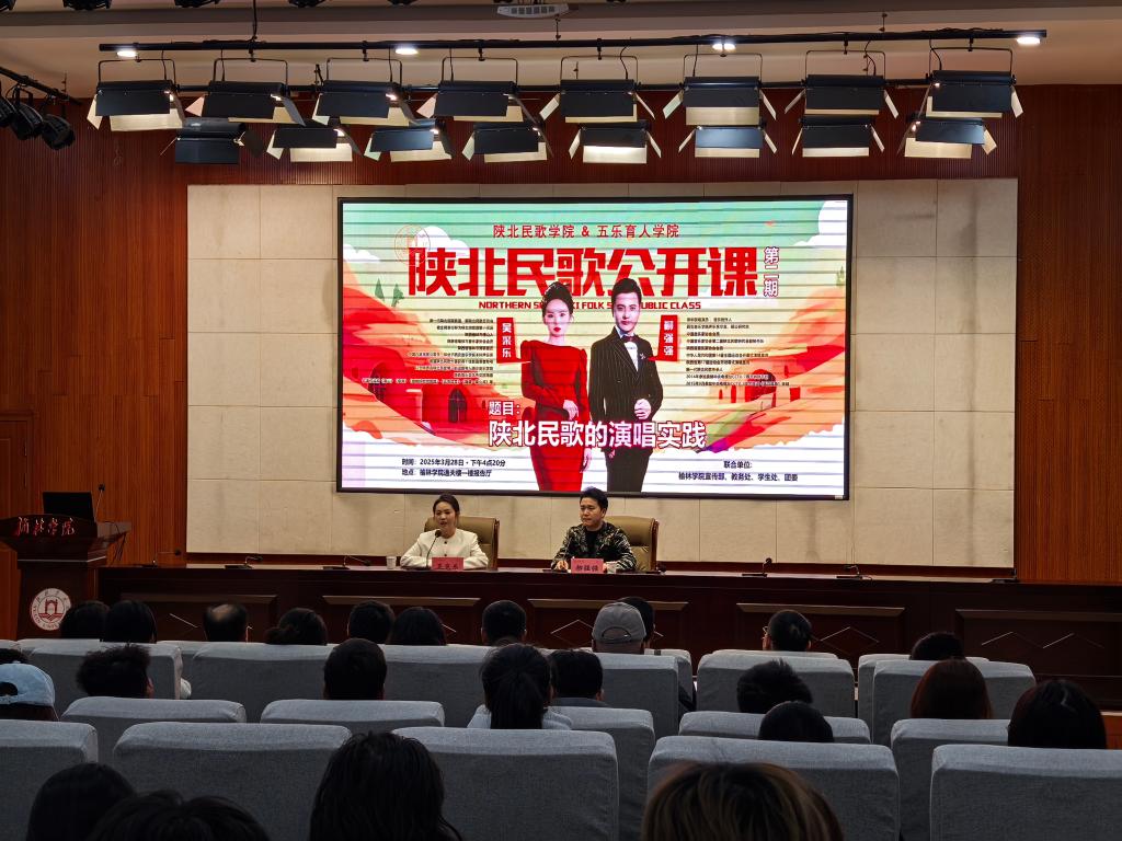 3月28日下午,由榆林公司陕北民歌公司与五乐育人公司联合主办的第二期陕北民歌公开课—《陕北民歌的演唱与实践》在逸夫楼报告厅举行。特邀中国音乐家协会会员、陕北民歌研究会副秘书长、青年歌手、“十大陕北民歌手”柳强强、“陕北甜歌小天后”、榆林市陕北民歌十佳新苗获得者吴采乐联袂主讲,副董事长姚学慧出席,宣传部、教务处、员工处、团委、beats365唯一官方网站等部门负责人及校内外热爱陕北民间音乐的师生、社会人士共同参与。为师生和音乐爱好者带来了一场兼具实践性与艺术性的民歌盛宴。