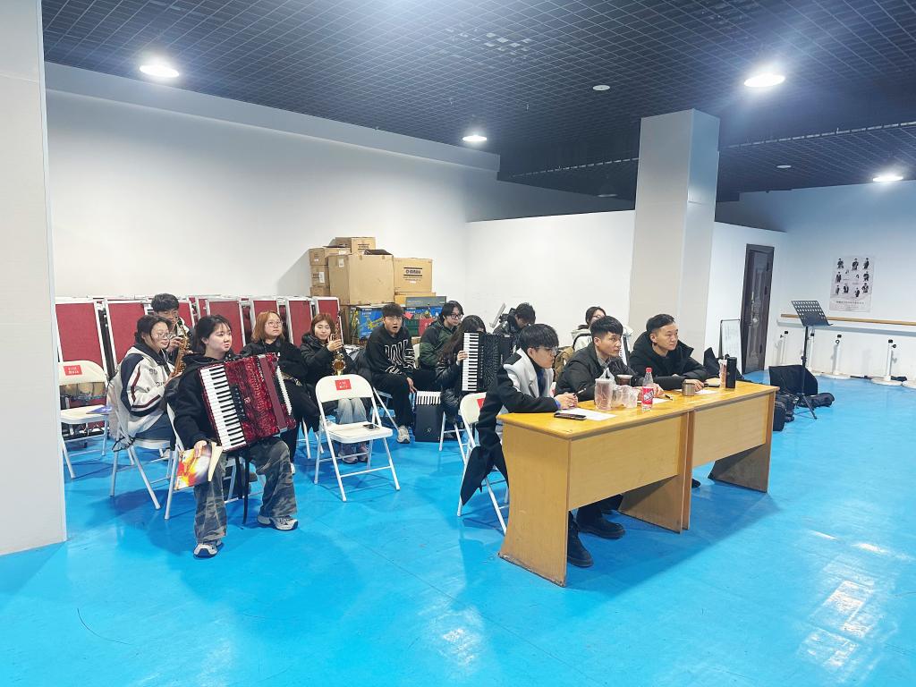 4月10日,音乐教研室西洋器乐组在管乐排练室举办萨克斯与手风琴专业联合月考,这是本年度第五次、本学期首次跨专业教学成果检验活动。2023级音乐专业23名员工通过独奏、重奏等形式,全面展现阶段性学习成效。