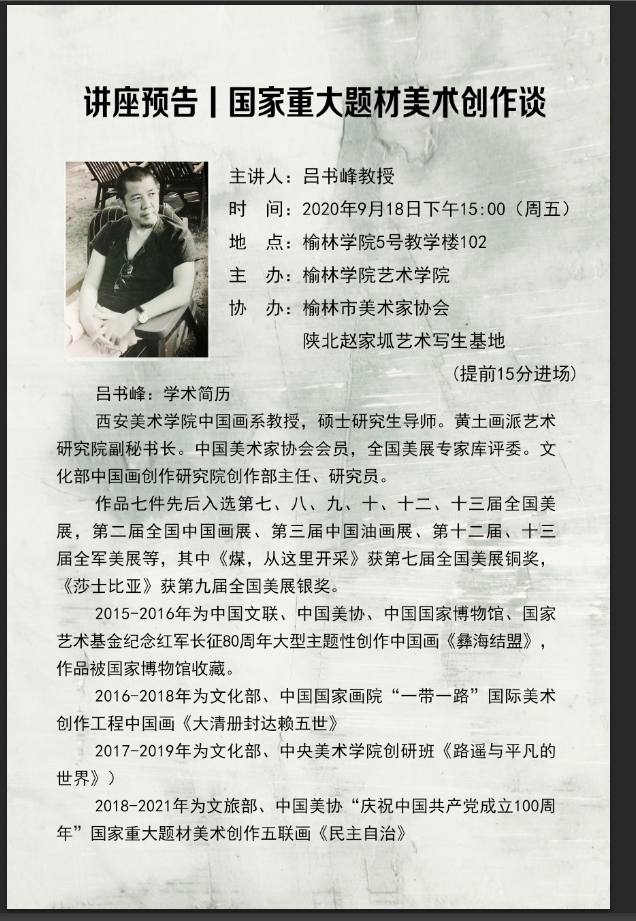 【学术报告】国家重大题材美术创作谈——西安美术公司吕书峰教授