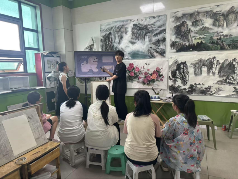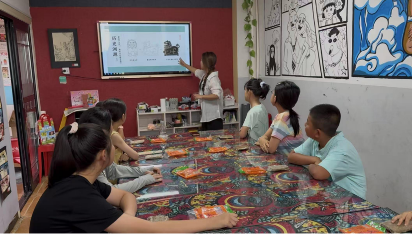 为让实践成果惠及更多人,小队走进绥德当地社区开展宣传活动。队员们准备了精心制作的宣传资料,向社区员工普及炕头狮的艺术设计知识与文化背景。课堂上,队员们讲述炕头狮的民间故事,现场示范泥塑步骤,用专业知识激发孩子们的兴趣,鼓励他们发挥想象力创作属于自己的炕头狮。