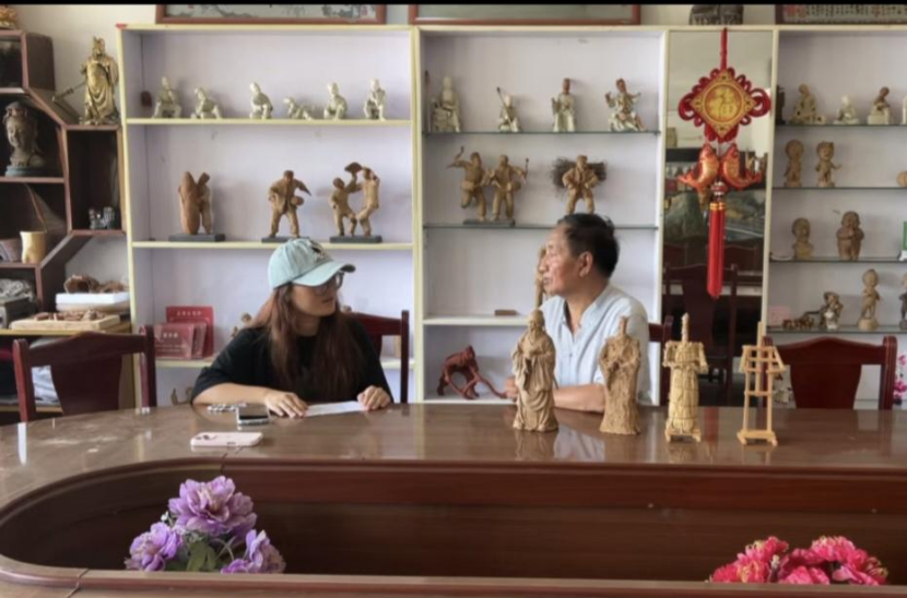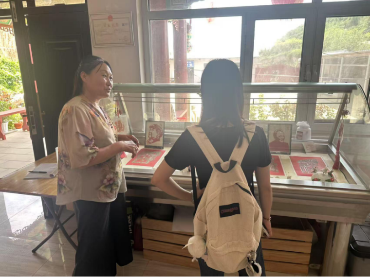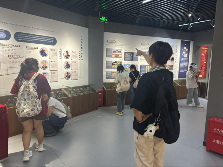 随后,小队走进绥德非物质文化遗产传承馆。馆内陈列的民间艺术作品琳琅满目,剪纸、泥塑、布艺等展品静静诉说着绥德人民的智慧与情感。身着传统黑色外衫的王文瑜老师热情接待了队员们,他逐一讲解展品背后的历史故事与文化内涵,让大家在触摸展品的过程中,仿佛穿越时空,深刻感受到非遗文化的历史脉络与温度。