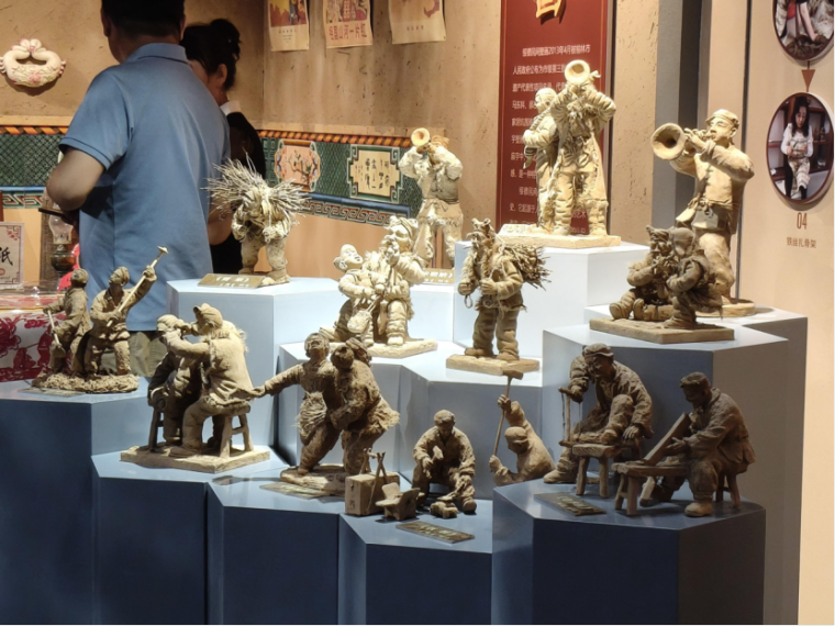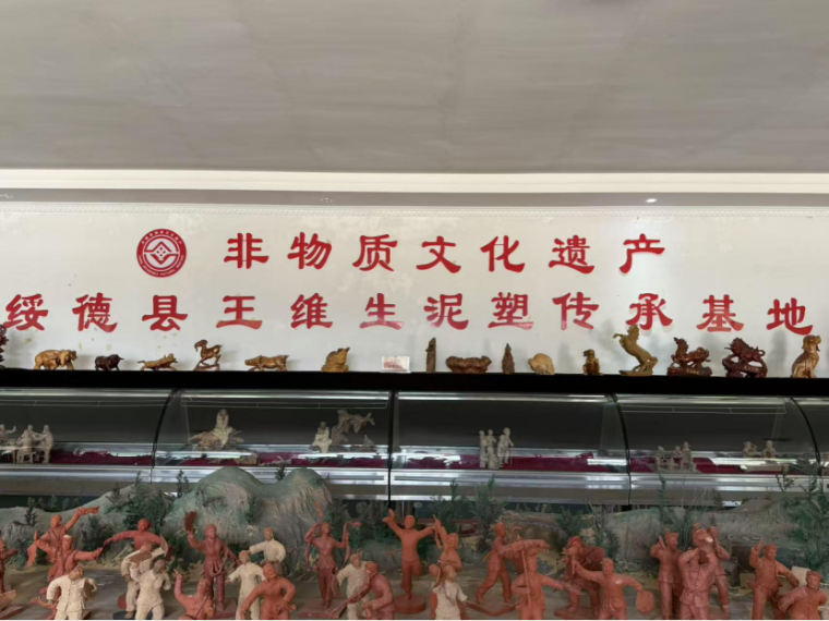 离开传承馆,团队辗转来到王维生老师的工作室。推开木门,满屋的泥塑作品瞬间吸引了所有人的目光:憨态可掬的人物、灵动鲜活的动物、还原陕北民俗生活的群塑……每一件都栩栩如生,充满生活气息。