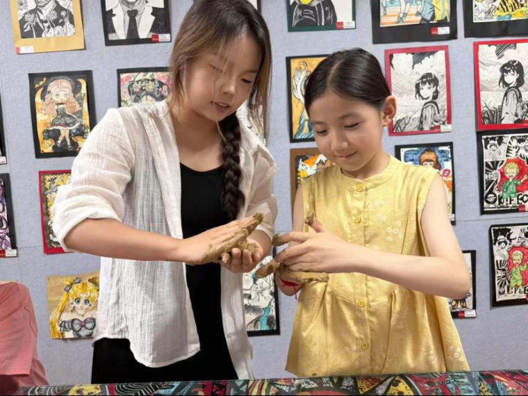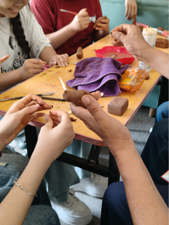 活动尾声,小队特别开设了泥塑兴趣班,邀请当地居民和员工参与。课堂上,孩子们兴致高涨,在队员们的指导下揉泥、塑形,专注又认真。看着孩子们眼中对泥塑的热爱,队员们与王维生老师都露出了欣慰的笑容。